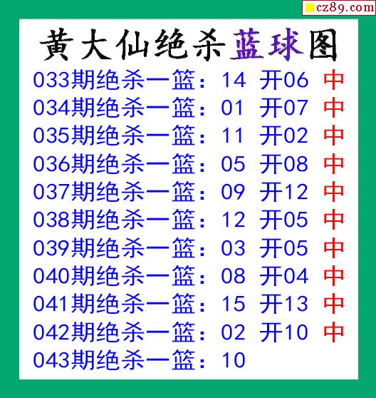 黄大仙杀蓝球043期双色球图谜 10中10